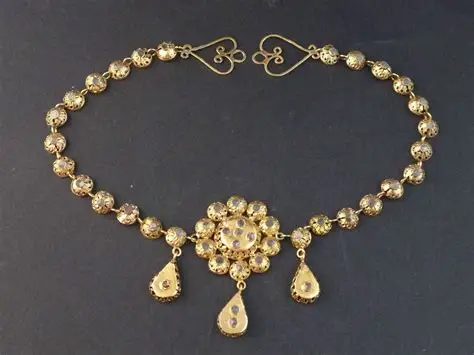 Un collier berbère authentique décoré d’émail coloré et de motifs traditionnels.